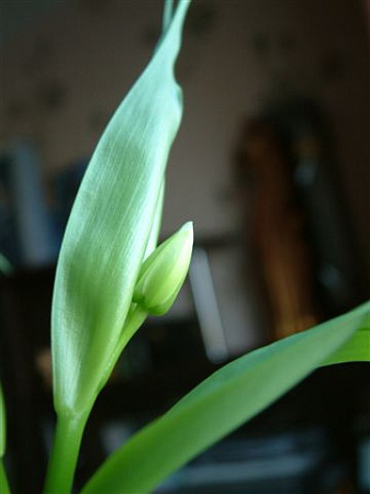 СтоИт у окна, подвязывать я её, почитав про хрупкость стебля, не хочу...у меня рамы на лоджии старые деревянные, если будет падать, пришпилю как-нибудь прямо к раме.
