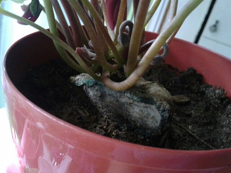 Моему цикламену 4 года, у него образовалось 5 точек роста, диаметр клубня-10-12см.Причем клубень уже сам начинает делится на части, так и хочется его выкопать, помыть и поделить! Но я слышала, что часто они гибнут при делении, также предлагалась ссылочка на сайт по цикламенам, но на английском языке(. Все ж таки я не удержалась и отломила два маленьких росточка с частью клубня-они сильно выпирали.Срезы присыпала древесным углем и посадила растишки. Увидим, что будет. Цикламены- ярко-розовые с красной серединкой, цветы крупные, наверно перс. Сейчас начинает цвести. Уважаемые форумчане, что вы думаете по этому поводу? Появился ли у кого нибудь подобный опыт?