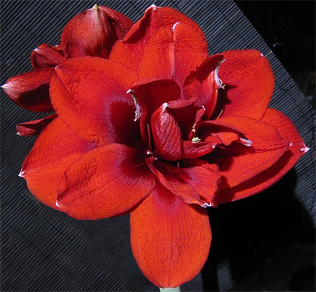 . Лепестки очень фактурные, бархатные с золотинками, отчего цвет смотрится оранжевым, в горле темно-вишневый. Концы лепестков с махнушками. Цветы 17-20 см в диаметре. Просто умираю от такой красоты, почему у меня раньше их не было? фотки увеличиваются.
