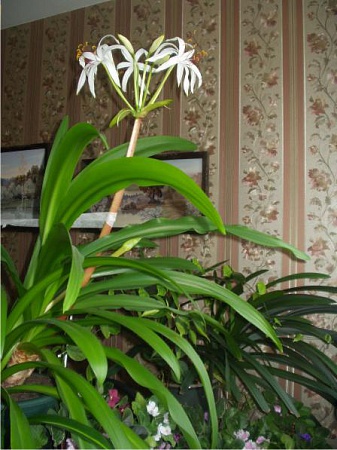 Elenor из Валинора, Замечательный у вас кринум. Но покажите хоть 10 человек у кого есть настоящий полноценный взрослый экземпляр азиатского кринума в квартире, но не искусственно выведенные формы-мутанты? А вот любителей у которых растут американские кринумы можно найти очень много. Именно из отсутствия активного деткования и своих внушительных размеров они так и не переступили порог ботанических садов и не вошли у нас в комнатную культуру. Из всего ассортимента кринумов имеющегося в нашей стране в комнатную культуру вошли в основном только те, которые не слишком громоздкие, активно размножающиеся и довольно декоративны. Азиатский очень декоративен, но частое отсутствие деток и его размеры его основная беда. Я работал с различными видами в оранжерее, дома держал азиатский, но потом избавился. Места от занимает намного больше чем гибискусы и фикусы, которые еще можно сформировать, да и более чем американский с такой-же длинной листа. Все видовые азиаские кринумы размножают в основном семенами, не путать с искуственно полученными пестрыми формами, карликовыми формами и гибридами (которые могут не давать семян, стерильны), которые активно воспроизводятся вегетативным путем. Это растение очень популярно в культуре и в Америке и в Азии, а так-же в некоторых странах Европы. Активно ведутся работы по выведению декоративных и компактных форм этого вида.