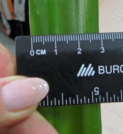 Размер листка: ширина 3 см почти у всех полноценно раскрывшихся листков. Длина от 35 до 45 см