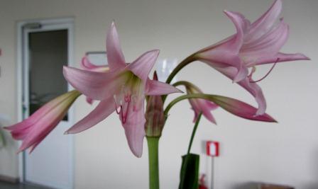 Я тоже похвастаюсь. Амакринум. Высматривала долго стрелку как обычно у кринумов, сбоку от листьев. А она оказывается растет среди листьев. Да еще и к свету повернулась. Чуть не прозевала. Стрела еще не расчехлилась, а бутоны уже раскрываться начали. Цвет изумительно нежный. Приятный аромат. Только вот цветочки не расходятся как у кринума, а растут плотненьким букетиком.