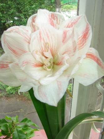 Вот этот гиппик продавался в горшке с ярлычком Aphrodite...половину луковицы у него не было совсем...как мне показалось, над ним проводили эксперименты по вырезанию донца, скорее всего ввиду неудачного его завершения был закинут в горшок с целью выкинуть, но потом написав на горшке 100 руб. и заглубив по самые уши...прилепили ярлычок с названием сорта "Афродита"... Где был куплен покупателем, окрыленным первым успехом, хотя и любовь то его началась ....не с первых гиппеаструмов в отцовском доме, где в аккурат к 8 марта (опять та же дата) ко дню рождения любимого папеньки !!! зацветал при заботливом уходе маменьки, безымянный красный гиппеаструм с одуряюще нежным лично для меня запахом, а с того..что куплен почти наполовину гнилой луковкой..описанный выше