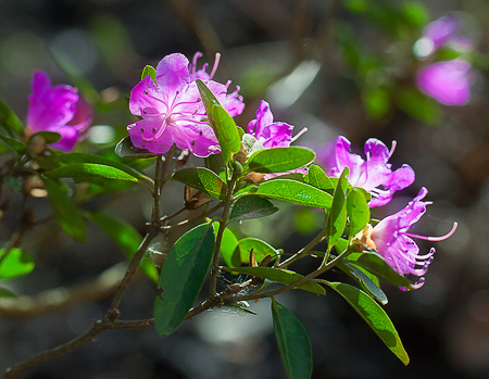 В прошедшие выходные раскрыл свои многочисленные цветочки рододендрон Ледебура: