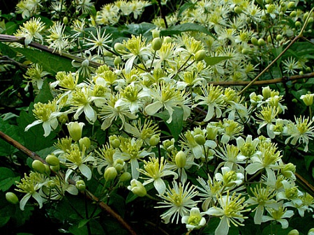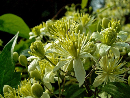 Прошедшие выходные радовал меня зацветший клематис. Какой? Не знаю, что это за клематис. Приобретала, как княжик, но это, несомненно, не княжик... Очень долго клематис набирал бутоны, которые заметила ещё в августе. Растение сильное, мощное. Посаженный в прошлом году метровой веточкой, к осени этого года увил площадь в где-то семь-восемь квадратных метров. При том, что все надземные побеги, выросшие в прошлом году, погибли. Ароматный. Но аромат на любителя: какой-то тяжёлый...