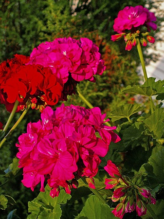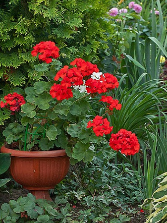 Каждую весну на даче высаживаю в ящики герани (то бишь пеларгонии) и любуюсь летом яркими шапками их соцветий... Очень люблю герань!