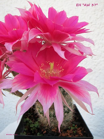 Растение приобреталось у Кактен-Хааге, в июне 2007 года. Но зацвело впервые лишь в этом сезоне, и расщедрилось сразу на три цветка!