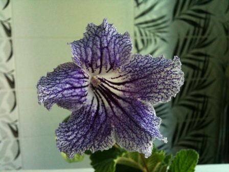 Зимняя Ночь при первом цветении выдала однотонные сине-фиолетовые цветы, разочаровала страшно и уехала, как абсолютно бесперспективная, к моему папе проходить "школу выживания" в условиях засухи-перелива. Успешно там адаптировалась, зацвела, как бешеная, огромными цветами, и -о, чудо!- на отдельных цветочках показались-таки белые крапушки и даже намек на кайму!!!