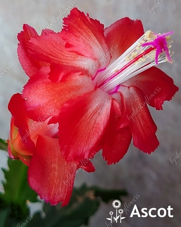 Sunny Bright. Жёлтая шлюмбергера японской селекции. Цветок среднего размера, в процессе роспуска приобретает карамельно-персиковые оттенки. Куст растёт вертикально.