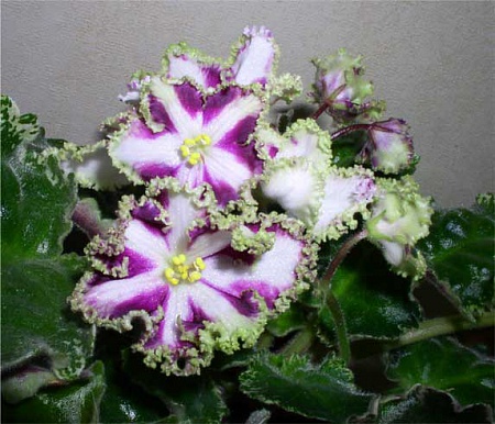 Heinz's Harbour Lights - раскрылись несколько цветочков, но их будет поляна, когда раскроются все бутоны. Великолепный сорт, с крепкими цветоносами, обильным цветением крупных махровых цветов на пестролистной розетке.