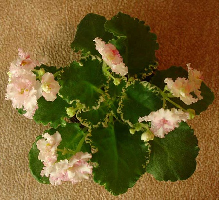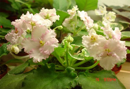 кстати, у меня в квартире холодно очень, батареи чуть теплые, и все фиалочные рюши проявляются в полной мере, особенно зеленые