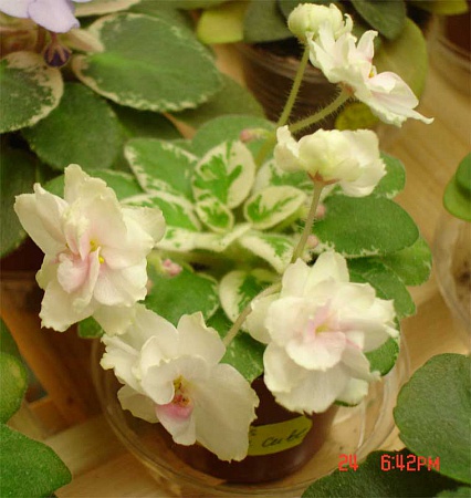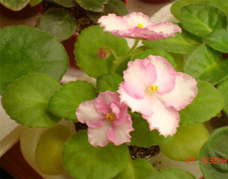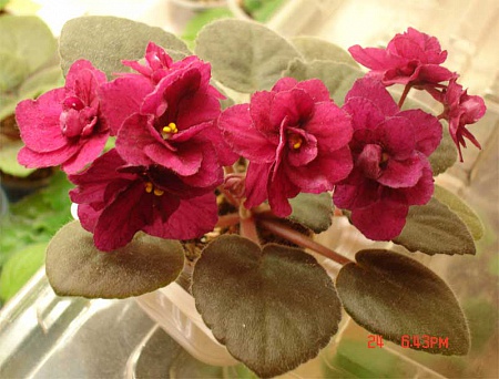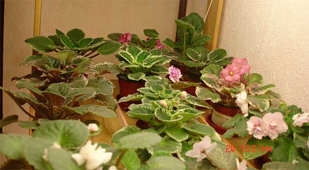 Илона, мой не теняет руки вверх, кстати оба два не тянут (люблю этот сорт, держу дубль). У меня ярко над стеллажами, две лампы по 36 ватт. Вот сделала фото общего вида. Он стоит не прям под лампами, но и то место очень даже "тепленькое". А вот совсем скраю кто стоит, те "руки вверх".