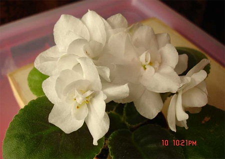 на самой труднодоспутной полке (наростили стеллаж под потолок практически) все цветет и отцветает без фотосесии, едва дотягиваюсь, чтобы полить вот Sapphire Ice удалось поймать момент