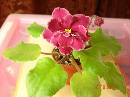 Лариса (meeshka), спасибо за посадочный материал, т.е. за листик вот еще фото, на самом деле это еще детка, даже не стартер, учитывая что сорт стандартый. И уже так хорошо цветет