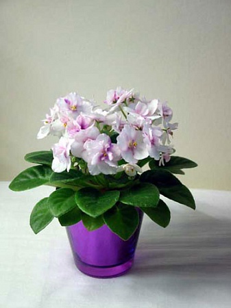 Во время приобретения фиалок, заметила, что нет белой. Выбрала White Dew, и не разочаровалась. Цветет охотно, цветки хоть и лежат на листьях, но как-то красиво, как лотос.