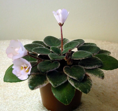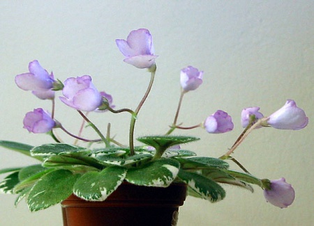 Я с ней замучилась. На стеллаже листья загибает как юбочку вокруг горшочка - слишком светло. Ставлю на подоконник - листья вытягиваются. Не пойму, что ей надо? Вот она.