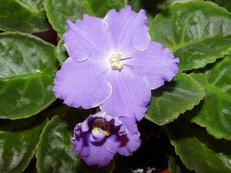 Кажется, пару лет назад знакомая (услышав, что мне нравятся сине-фиолетовые фиалки) презентовала мне вот этот цветочек. Нежавно я, наконец, узнала, что это за сорт - Афродита (Щербакова). Очень он меня радует - компактная розетка и цветет часто.