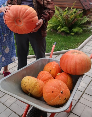 15 сентября - в теплице продолжают плодоносить огурцы, дозревают перцы. Собрали тыквы. Они сидели за забором и уж очень их хорошо стало видно в жухнущей траве. Побоялись, что без нас соберут.))