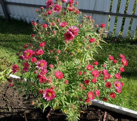 Это я уже их посадила. Очень порадовалась двум осенним астрам. Одну я уже видела у кого-то в палисаднике по дороге. Но её нигде не продавали. Красивый сине-лиловый цвет. А вторую - вообще в первый раз. Как увидела, так и хапнула кустище. На фото не передалось, но цвет у неё - ядовито (неоново) ярко-розовый. Не переживу, если она не перезимует. И хризантема красная впечатлила. У меня есть что-то подобное, но она высокая. А это карликовая. Ну и флоксик не совсем обычный. Название сейчас не вспомню, смотреть в тетрадке надо.