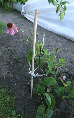 С обновками прям беда.... Как только чего раздам соседям, они несут и мне что нибудь взамен. Вот опять обновки. Эхинацея и ещё какая то лиана (название не могу вспомнить) у которой какие-то фильдеперсовые плоды, придающие жизненные силы, повышающие тонус, энергию и вааащееее. Маман приказала посадить! Не себе, так ей. ))) Ну прикопала к забору. Там хоть мешать не будет.