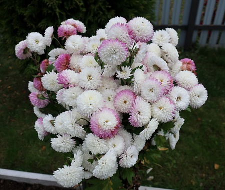 Как всегда, к маме домой поехал букетик из самой поздней хризантемы.