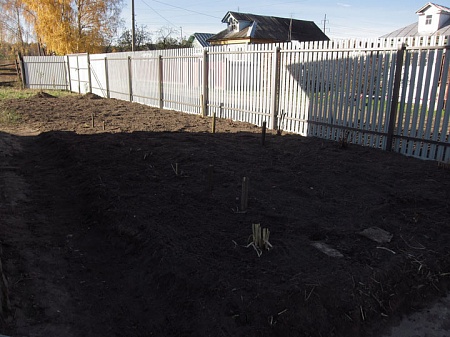 Муж вспахал на мотоблоке..., ну порядка полутора соток. Затем граблями выбрали всю старую траву с корнями. У нас это был пырей. Растёт кочками и не имеет ни красы ни радости. Потом я всё это ровняла долго и упорно. Ну а потом и газонную траву посеяла. Надеюсь посевы перезимуют и дружно взойдут, когда время придёт. Главное их снова, пока газон не закрепится, по весне не затоптать. Есть уже мыслишки по благоустройству в новом сезоне.)))