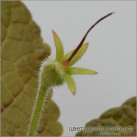 На миниглоксинии Цвет-Кострома семенные коробочки необычной округлой формы. Опыление 'Цвет-Кострома' х 'Bleu Ciel'.