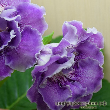 У этого сорта мелко-волнистый, почти бахромчатый край. Новый признак уже можно наблюдать в фенотипе. Дополнительно край лепестков заворачивается внутрь цветка, что визуально усиливает эффект. Особенности сорта: 1. Огромный махровый цветок при колокольчатой форме венчика, т.е. махровый цветок "тидейной"/"башмачком"/природной формы, что является редкостью. Нижние лепестки имеют больший размер по сравнению с верхними, дополнительно подчеркивая форму цветка. К слову сказать, цветки такой формы обычно всегда меньше цветков округлой формы. А здесь огромный цветок. 2. На многих цветках верхние лепестками более темные, чем нижние! Так бывает у минисиннингий. Бывает часто. А встречаются ли такие цветки у глоксиний? У глоксиний с природной формой цветка, наоборот, осветлена верхняя часть. Для глоксиний наличие верхних темных лепестков является уникальным генетическим признаком. крайне редкая расцветка. С этим признаком я уже работала ранее. Например, такая окраска цветка у миниглоксиний Цвет-Маленькая Леди и Цвет-С Днем Рождения. 3. Бахромчатый край лепестков, насколько это возможно для глоксинии! Также является редкостью. 4. Длительное обильное цветение. 5. Аккуратная розетка без стволика. 6. Листовые черешки короткие, что придает розетке еще более аккуратный вид.