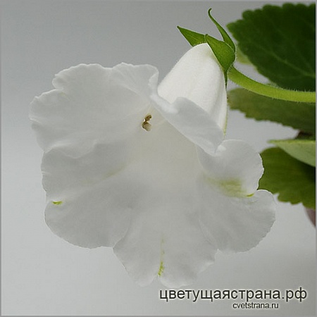 Цвет-Нефритовая Крошка (Савелова, 2022) Миниглоксиния, цветы с ароматом. НОВИНКА 2022г Миниатюрная дочка глоксинии Цвет-Белый Нефрит. Аромат цветков не такой яркий, как у родителя, но зато это миниглоксиния. Цветок такой же снежно-белый, ни единой крапинки, даже в горле. Средне-зеленые листочки.