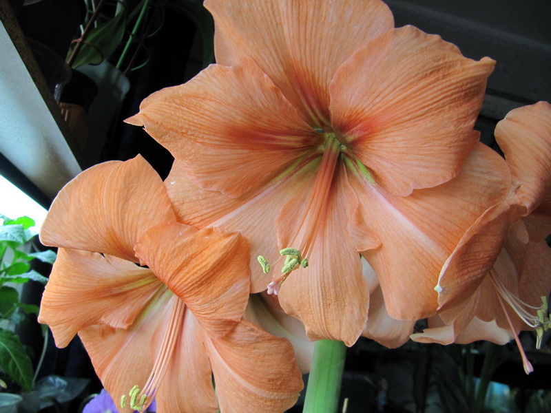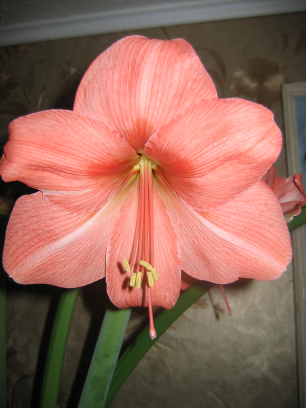 Диаметр цветка 19 см. Обычно 4-6 цветков на стрелке высотой 45-50 см.