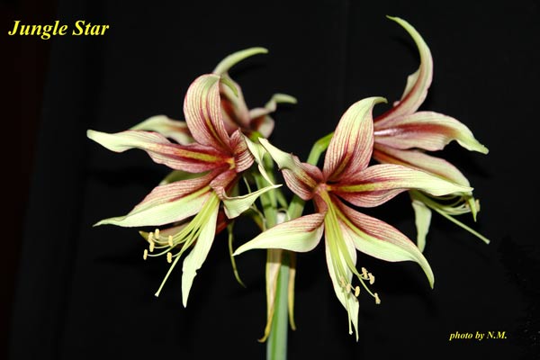 При размере луковицы 32-36 см в окружности имеет три, реже четыре крепкие стрелки. Листья развиваются после цветения.