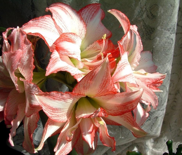 Цветок 12,5-16 см. 5-6 цветков на стрелке высотой 35-45 см.